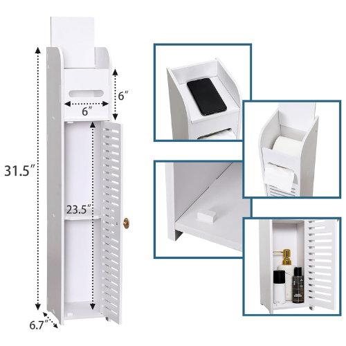 - Multifuncional: Ofrece espacio para papel higiénico, artículos de tocador y otros objetos, su sentido vertical te permite guardar con mucha comodidad varios objetos del baño..