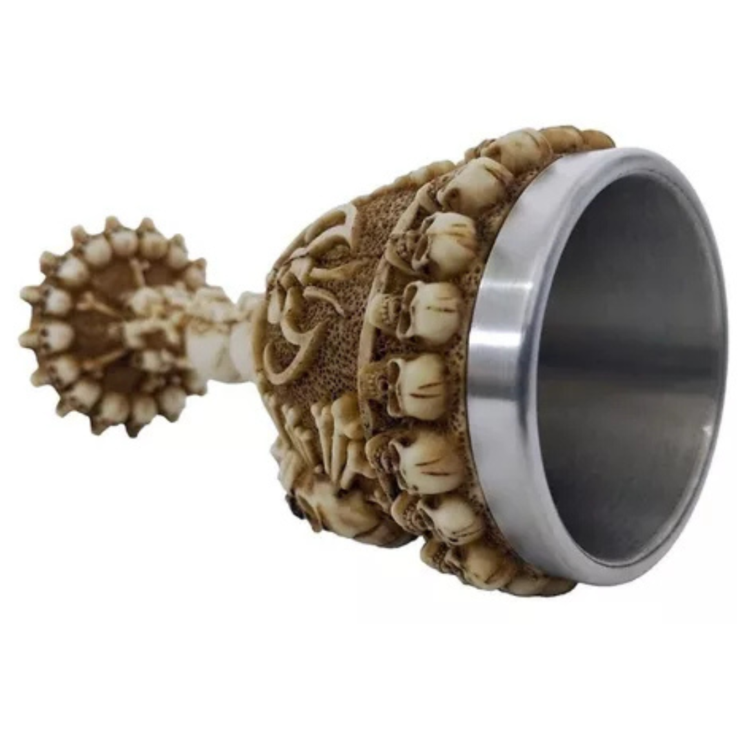 ¿Quieres sentir la fuerza junto a la valentía de los guerreros en cada sorbo? Nuestra Copa Medieval Cráneo Santo es la pieza que necesitas para añadir un toque épico a tus reuniones. Con su diseño inspirado en los rostros mórbidos medievales y su construcción robusta, esta jarra te transportará a las sagas mediavales.