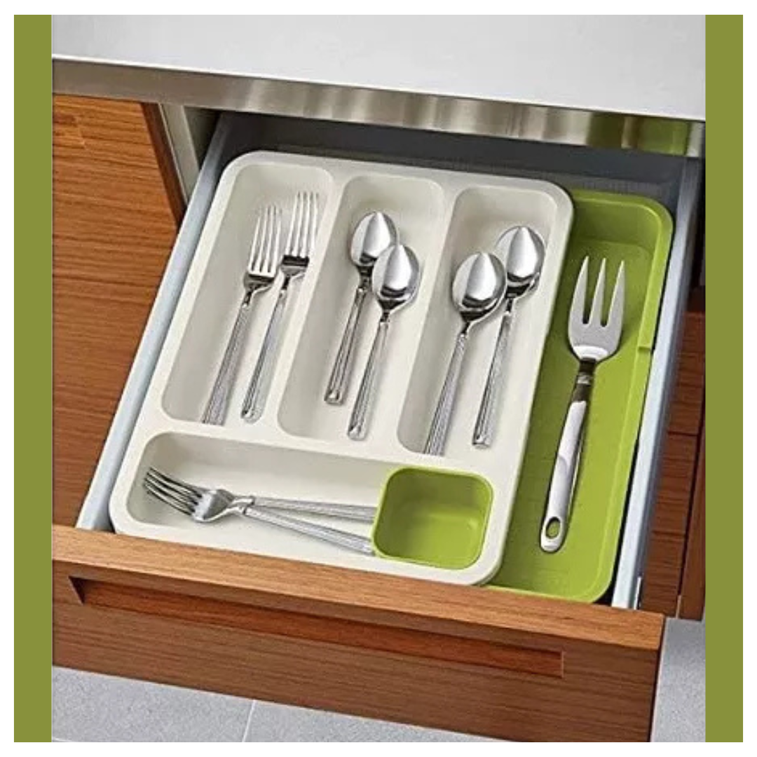- Organización Eficiente: Nuestra bandeja de almacenamiento es la solución perfecta para mantener tus cubiertos, cucharas, tenedores y cuchillos organizados de manera eficiente en tu cajón de cocina. Dile adiós al caos, dile hola a la armonía en tu espacio culinario.