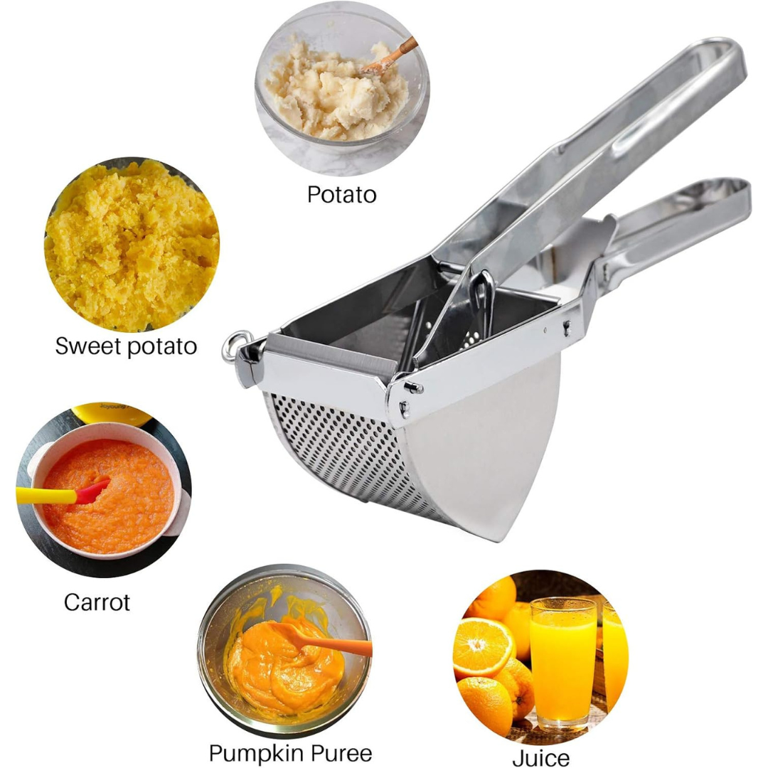 - Versátil: No solo es ideal para patatas, sino también para triturar otras verduras y frutas como zanahorias, calabazas como frutas cítricas, ampliando tus opciones culinarias.